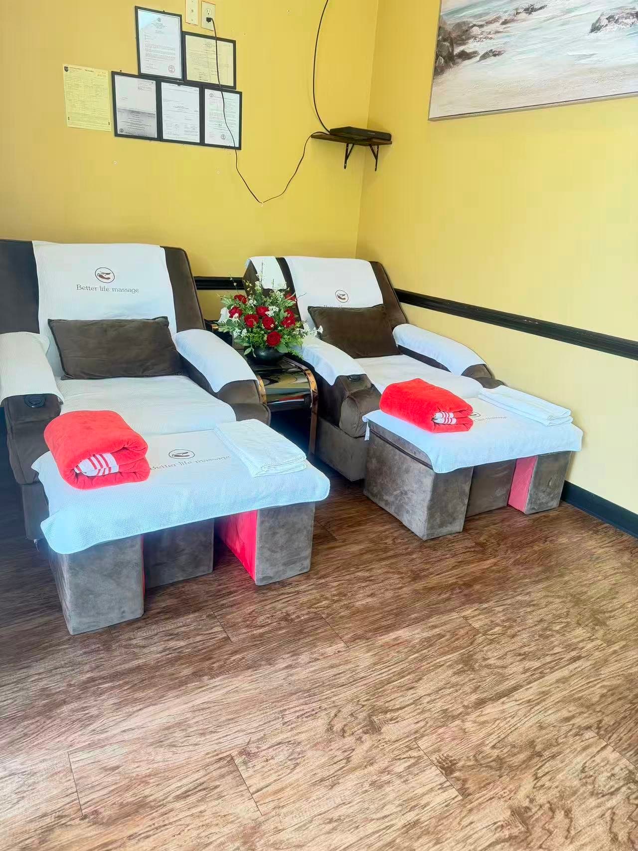 At Better Life Massage, we provide professional massage services designed to help guests relax and recharge. Our services include foot massage, table massage, chair massage, Thai massage, and deep tissue massage, with flexible session options to fit different needs and schedules. We also offer combination massage sessions that blend different techniques for a balanced and refreshing experience. Our goal is to create a calm and welcoming space where every guest can unwind and enjoy consistent, attentive care.
